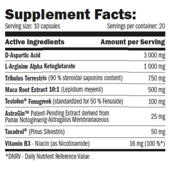 У 10 капсулах тестобустера Testo F-200 міститься: