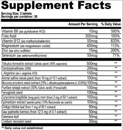 Tribulus Terrestris, включений в склад, вважається ефективним засобом для підвищення рівня тестостерону в організмі.