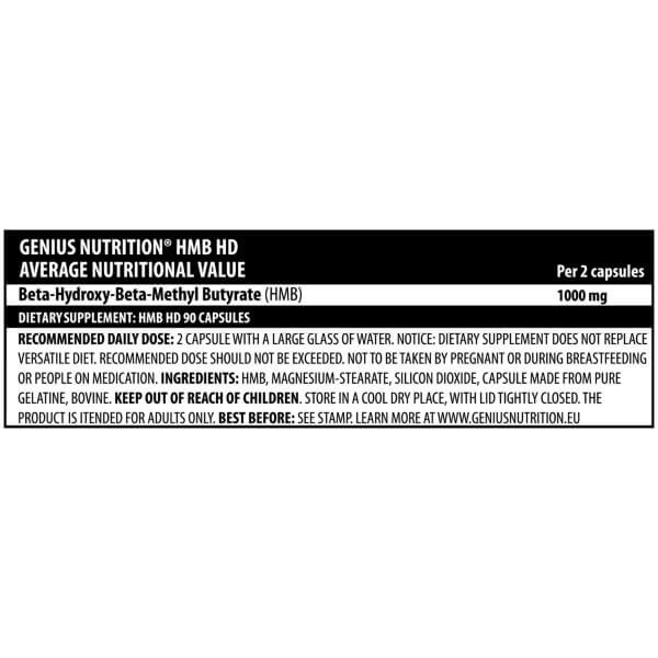HMB-HD від популярного шведського бренду Genius Nutrition – концентрований НМВ (бета-гідрокси-бета-метилбутират) у формі невеликих капсул. Цей нутрієнт є одним із похідних незамінної амінокислоти лейцину.