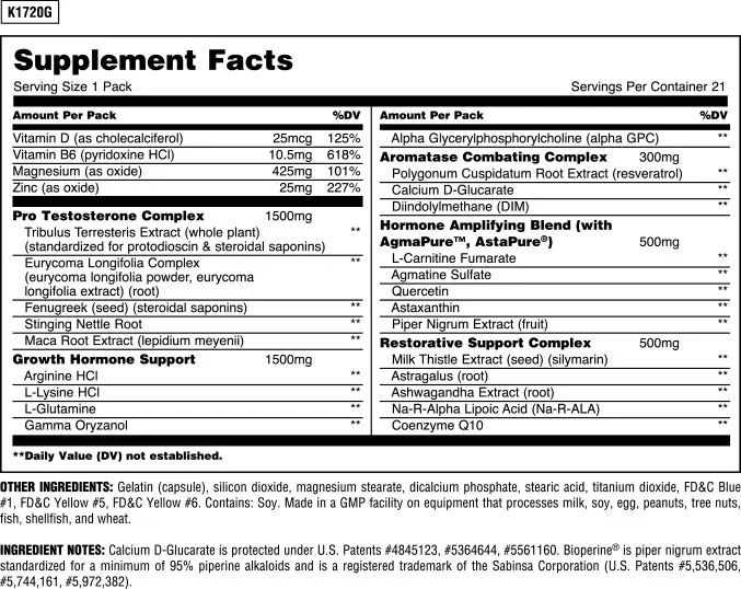 Добавка поставляється в одноразових пакетиках і містить перевірені компоненти, які природним способом допомагають підвищити здатність організму виробляти тестостерон і гормон росту, які є основними анаболічними гормонами. Крім того, бустер містить інгібітори ароматази та блокатори DHT, які перешкоджають трансформації тестостерону в DHT і естроген.