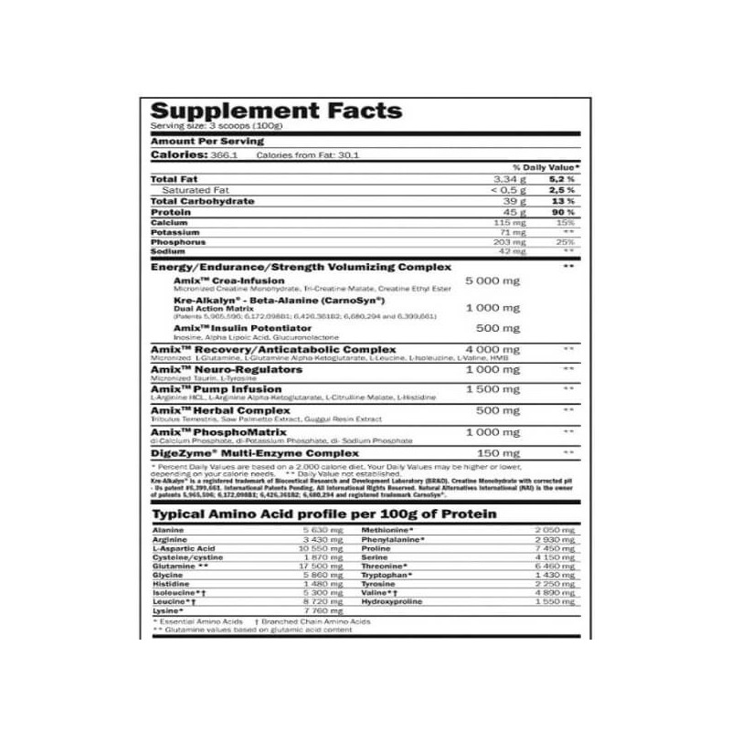 · 6,5 г унікального енергетичного комплексу з креатином, бета-аланіном, альфа-ліпоєвою кислотою, інозином;