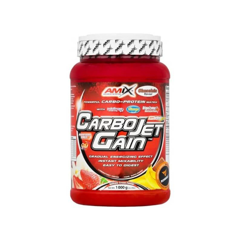 Carbojet Gain – найпотужніший гейнер від британського бренду Amix. Цей протеїново-вуглеводний продукт містить унікальну білкову суміш з декількох видів протеїнів, карбомікс з повільних та швидких вуглеводів, мінеральну матрицю, а також комплекс травних ферментів, що підвищують засвоюваність основних речовин. Поєднання інгредієнтів з різною швидкістю всмоктування забезпечує тривалу дію біодобавки.