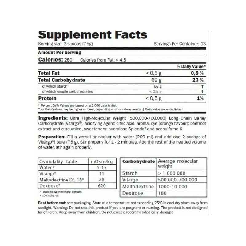 Vitargo + Kre-Alkalyn від британського виробника Amix – універсальний високоефективний гейнер, до складу якого входять одразу дві революційні формули. Це унікальна запатентована вуглеводна матриця Vitargo, що містить великомолекулярні швидкозасвоювані вуглеводи, а також формула Kre-Alkalyn з високоякісним буферизованим креатином останнього покоління. Він має відносно високий рівень РН і відрізняється від своїх попередників поступовим рівномірним всмоктуванням, а отже, тривалішим ефектом.