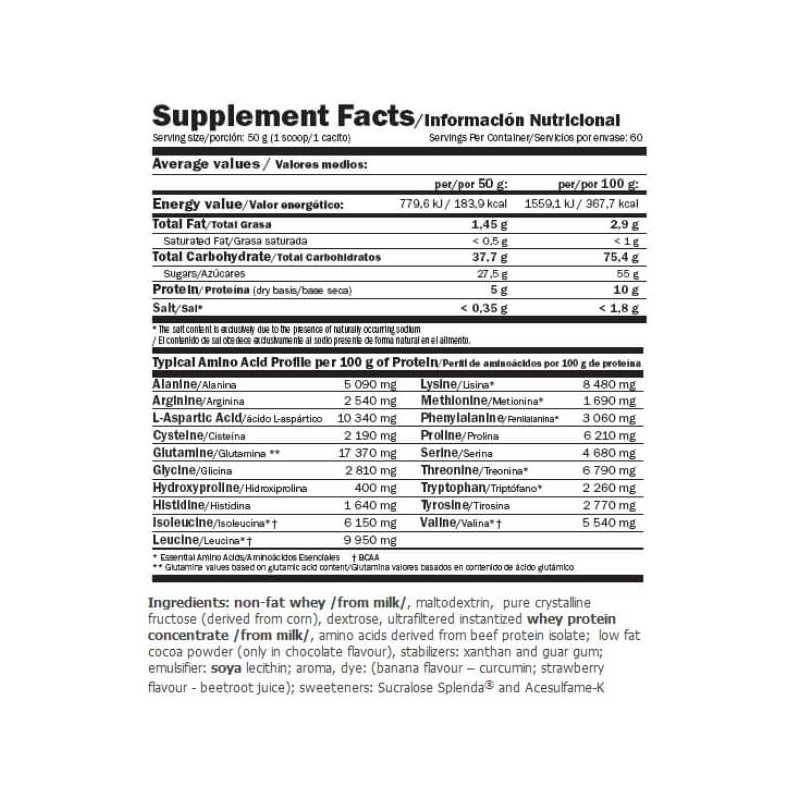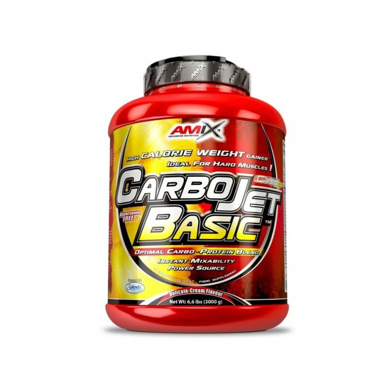 Carbojet Basic – традиційний збалансований гейнер від британського бренду Amix. Його перевагами є висока калорійність і продуманий склад без зайвих добавок, що включає прості і складні вуглеводи, протеїни з широким амінокислотним профілем і дуже невелика кількість жирів.