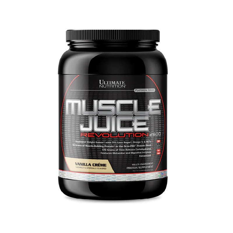 Ultimate Nutrition Muscle Juice Revolution: Шлях до Повноти М'язів та Енергії.Ласкаво просимо в світ відновлення та революційного росту м'язів з Ultimate Nutrition Muscle Juice Revolution. Цей продукт став втіленням передових технологій у галузі спортивного харчування та пропонує вам комплексний підхід до досягнення ваших фізичних цілей. Muscle Juice Revolution - це не просто продукт, це стандарт якості, який супроводжує вас на шляху до ідеальної фігури.