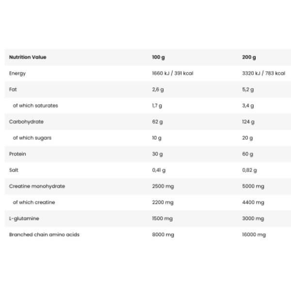 У порції порошку BAD ASS Mass від Fitness Authority масою 100 г міститься: