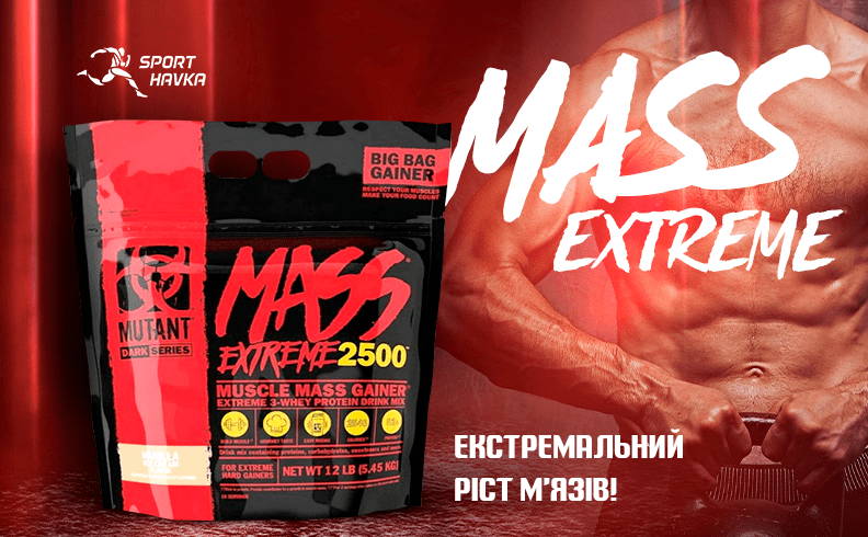 Mass Extreme 2500 Mutant – унікальна біодобавка від канадської компанії Fit Foods, що є збалансованим білково-вуглеводним міксом з гідролізату, ізоляту та концентрату сироваткових тваринних протеїнів, а також повільних і швидких вуглеводів.