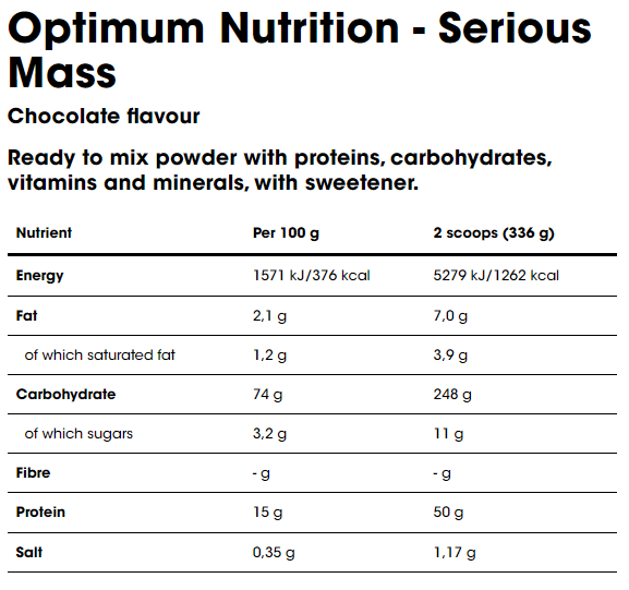 Optimum Nutrition Serious Mass EU - це ідеальний вибір для тих, хто хоче домогтися помітних результатів у наборі маси, не жертвуючи якістю продукту.