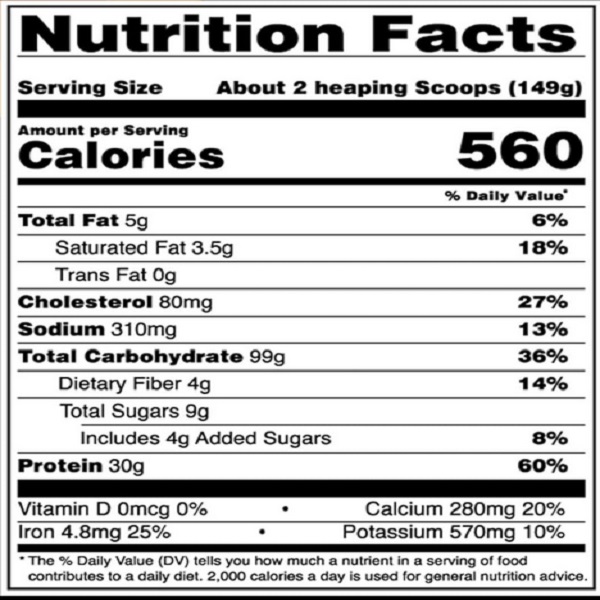 Рекомендоване застосування: змішайте 2 мірні ложки (149 г) з 300-400 мл води або молока. Приймайте після тренування або між основними прийомами їжі для додаткового джерела калорій та поживних речовин.