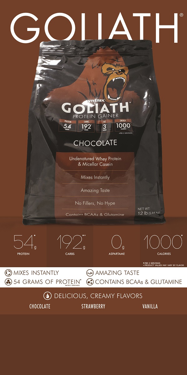 Гейнер Goliath-це унікальна комбінація кращих протеїнів і складних вуглеводів, заряджає енергією для активних тренувань і сприяє прискореному набору мязової маси.