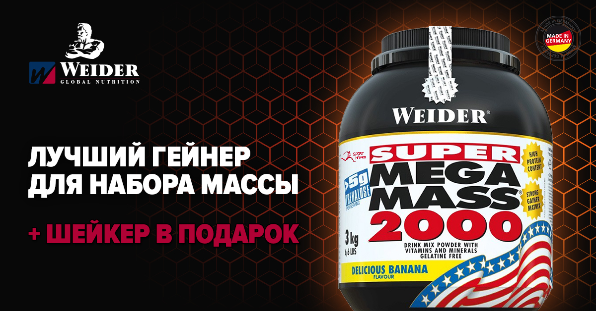 Якщо Ви не маєте можливість підвищити вживання калорій за допомогою звичайного харчування, вирішити питання допоможе MEGA MASS. Навіть худорляві від природи атлети домагаються відмінних результатів. Суміш яєчного і молочного протеїну, а також вуглеводний склад роблять MEGA MASS 2000 універсальним і незамінним для атлетів поживним продуктом. Гейнер МЕГА МАС 2000 можна поєднувати з іншими спортивними біодобавками. Наприклад з амінокислотним комплексом і креатином.