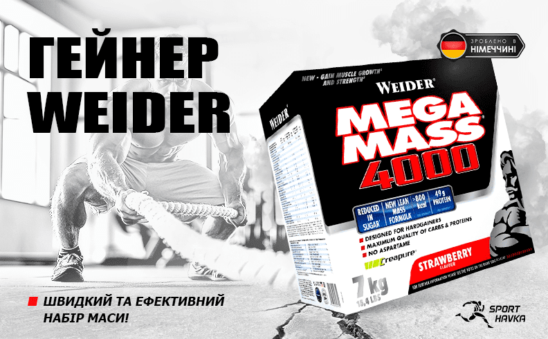 Якщо бажаєте набрати вагу і при цьому досить швидко, тоді варто звернути увагу на біодобавки з високим вмістом вуглеводів і білків. Однією з таких є гейнер нового покоління MEGA MASS 4000 від Weider.