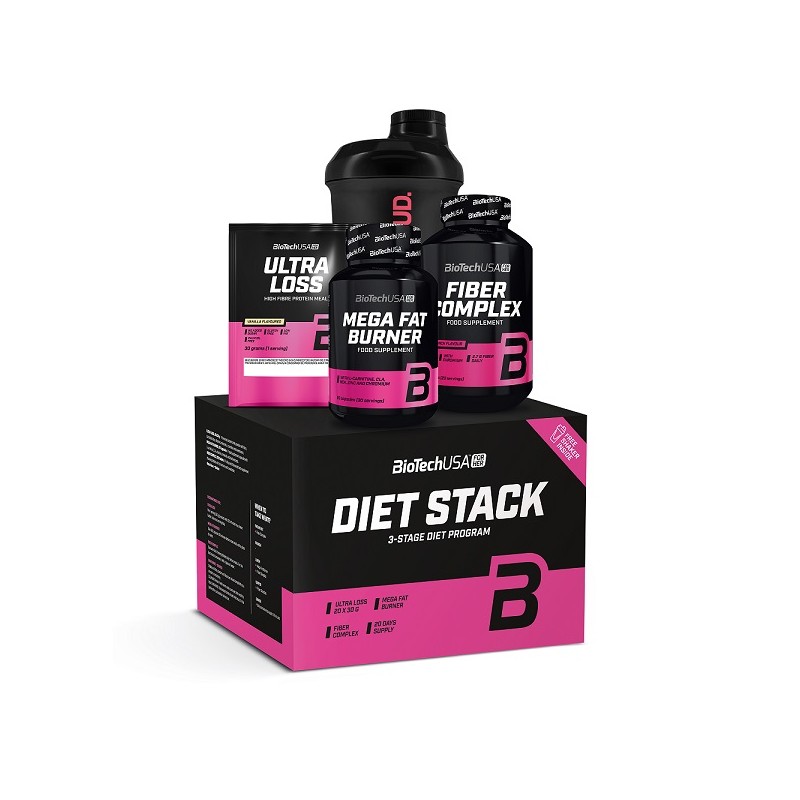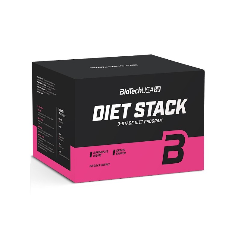 Комплект Diet Stack від BioTechUSA -це надійний помічник в боротьбі із зайвою вагою і формуванні красивої фігури, розроблений спеціально для жінок. Набір містить 3 різні за типом впливу на організм добавки, що підсилюють ефект від фізичних навантажень і підтримують жіночий організм під час дотримання суворої дієти. Результат-швидкий скидання ваги, відмінне самопочуття і стан шкіри, волосся і нігтів.
