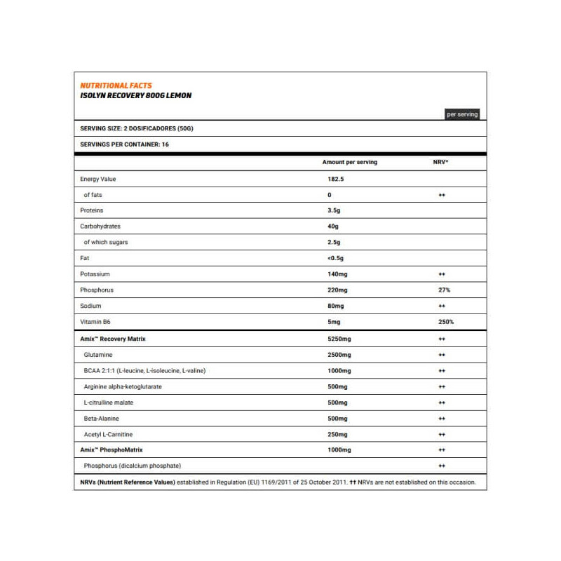 У порції порошку Isolyn Recovery Drink від Amix масою 50 г міститься: