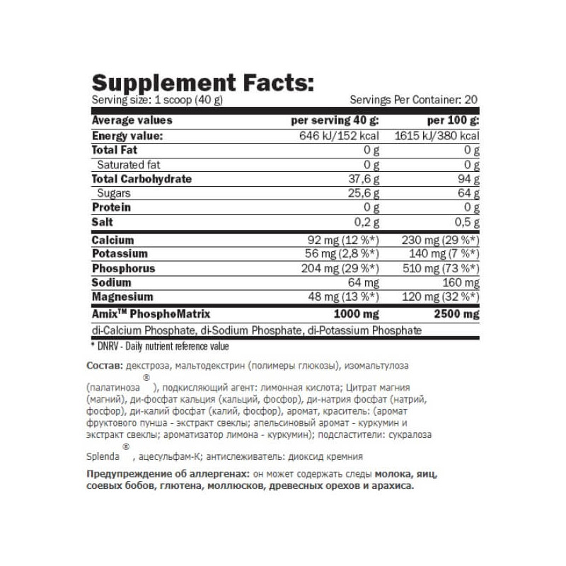 У порції ізотонічної добавки Isolyn Isotonic Drink від Amix масою 40 г міститься: