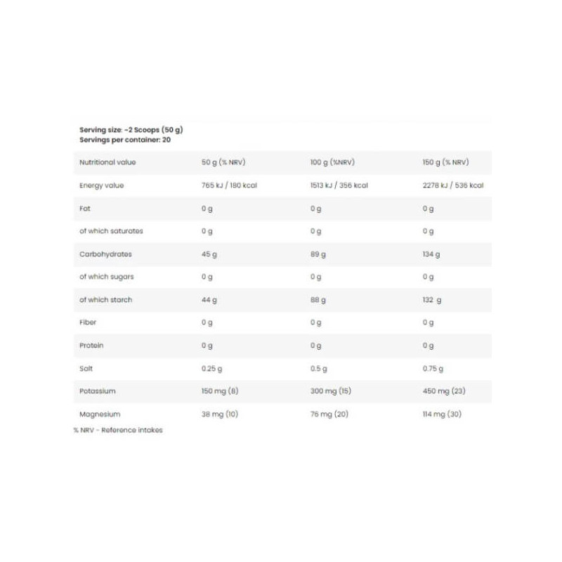 У порції продукту Vitarade El від Fitness Authority масою 50 г міститься: