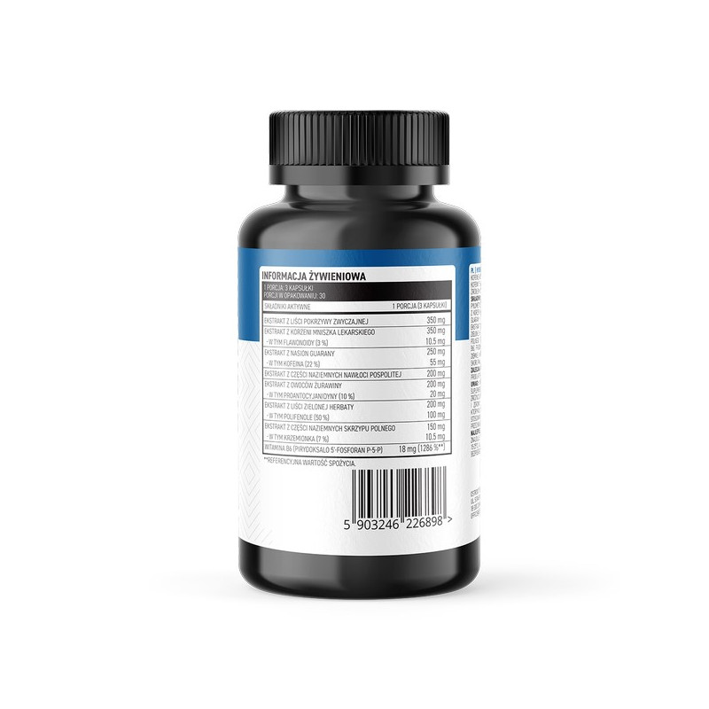 Препарат також містить вітамін В6, екстракт хвоща і зеленого чаю, які володіють сильним антиоксидантною властивістю і допомагають знижуючи артеріальний тиск.