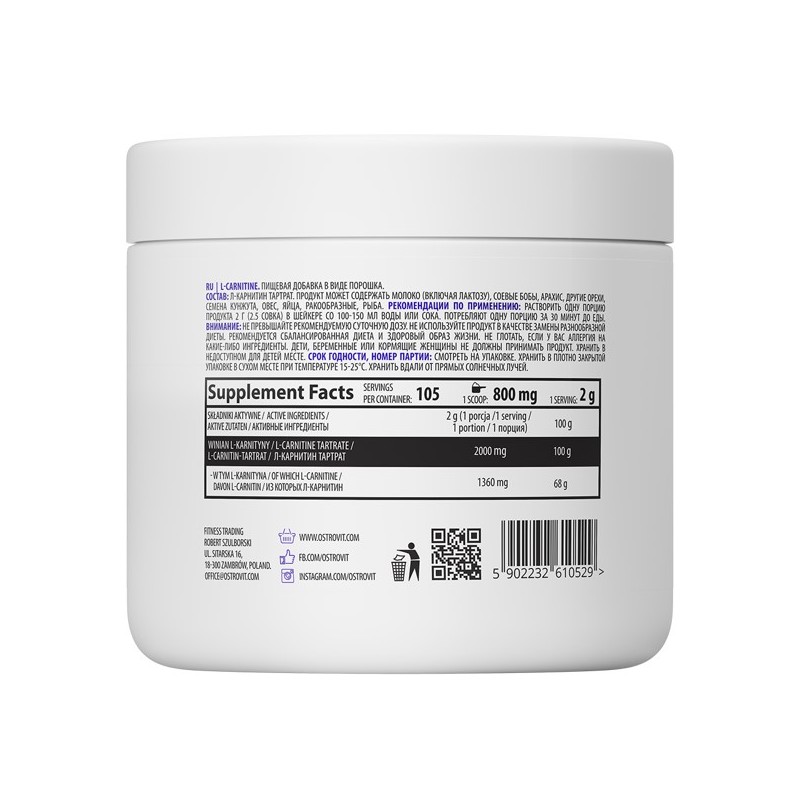 Склад Ostrovit L-Carnitine на 1 порцію (1,5 г):