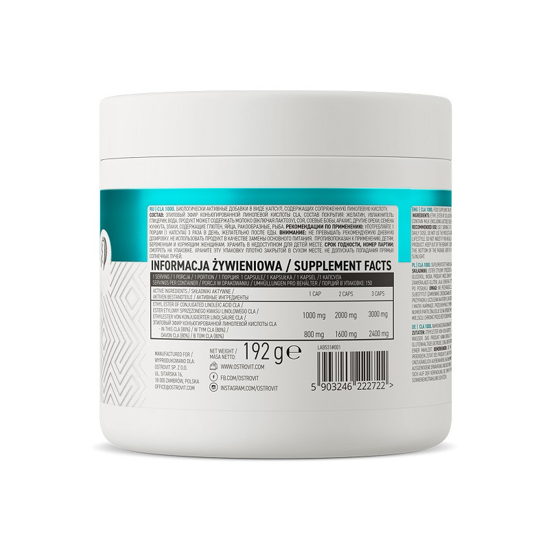 Склад 1 таблетки: 1000 мг CLA, гліцерин, очищена вода, желатин.