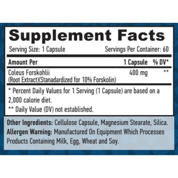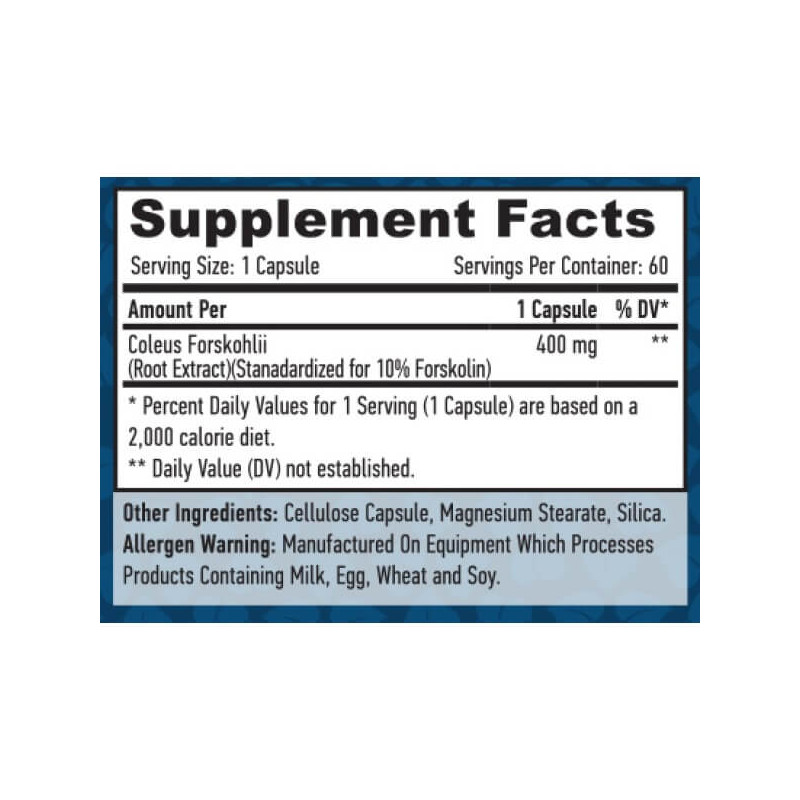 У кожній капсулі харчової добавки Соleus Forskohlii від Haya Labs міститься: