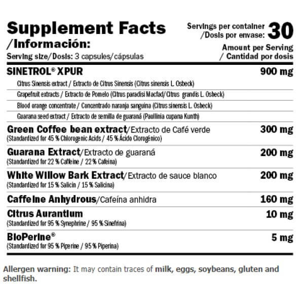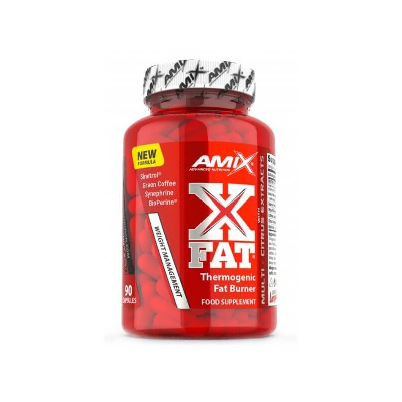 XFat від британського виробника Amix – потужний термогенний продукт, що бездоганно справляється із завданням здорового безпечного жироспалювання. Основним активним компонентом у його складі є унікальна запатентована матриця Sinetrol Xpur, що включає екстракти апельсина, грейпфрута і насіння гуарани. Вона посилена кофеїном, біоперином та іншими рослинними інгредієнтами.