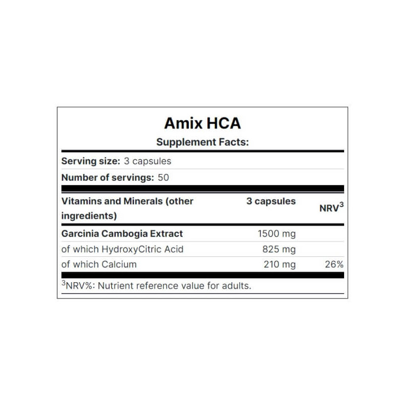 HCA від популярного бренду з Великобританії Amix – біоактивна добавка, основною речовиною, що діє, в якій є гідроксицитринова кислота (НСА). Її витягають із натуральної високоочищеної сировини – висушеної екстрагованої шкірки плодів камбоджійської гарцинії. Концентрація НСА у ньому сягає 60%.