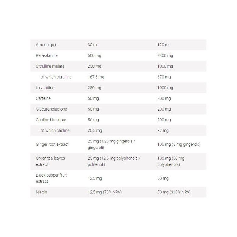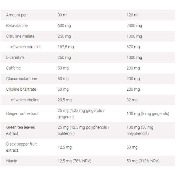 У порції рідини Fat Burner 2 in 1 від Fitness Authority об'ємом 30 мл міститься: