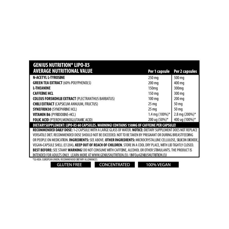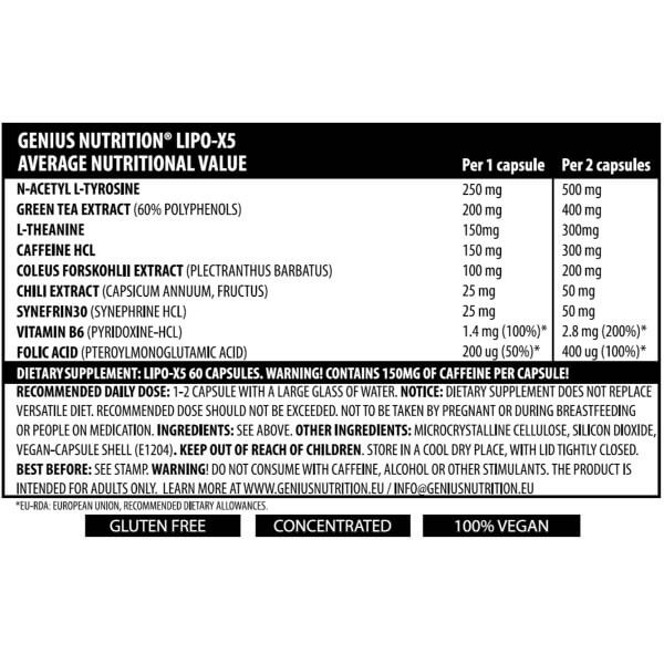 У кожній капсулі Lipo X5 від Genius Nutrition міститься: