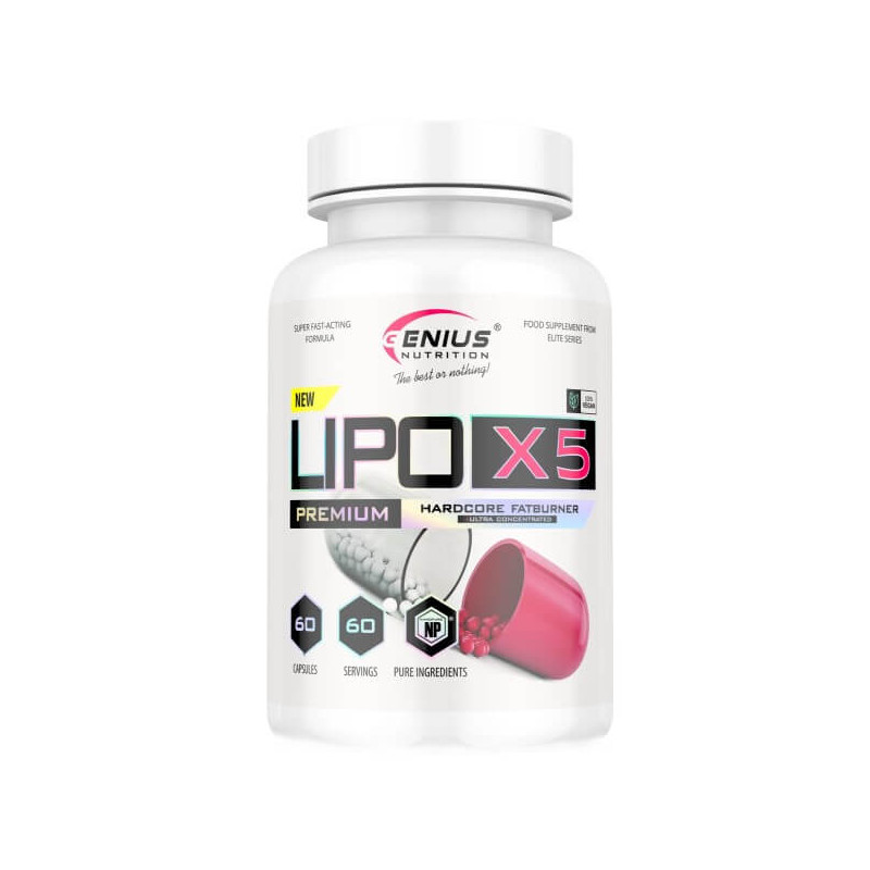 Lipo X5 від легендарного виробника Genius Nutrition - потужний мікс, що спалює амінокислот, рослинних екстрактів, вітамінів, кофеїну і синефрину. Грамотно підібрані інгредієнти діють на організм комплексно та синьогрично, демонструючи виражений позитивний ефект одразу за декількома напрямками.