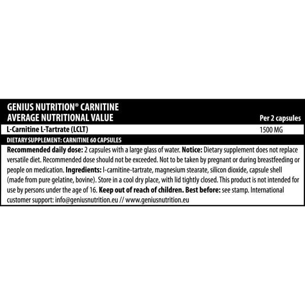 Carnitine Tartrate від легендарного європейського бренду Genius Nutrition – натуральний жироспалювач, активним інгредієнтом у складі якого є тартрат L-карнітину. Від звичайного карнітину він відрізняється кращою засвоюваністю та ефективнішою підтримкою оптимального рівня карнітину в м'язових тканинах.