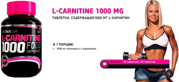 Склад 1 таблетки препарату: 1000 мг карнітину.