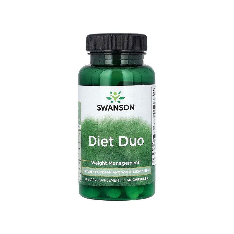 Diet Duo - Chitosan and White Kidney Bean Swanson (60 капсул) допомагає природним шляхом контролювати вагу. Формула поєднує хітозан і екстракт білої квасолі для підтримки метаболізму. Продукт сприяє зменшенню засвоєння жирів і вуглеводів, що робить його ефективним у комплексних програмах схуднення. Легко використовувати завдяки капсульній формі та оптимальній дозі.