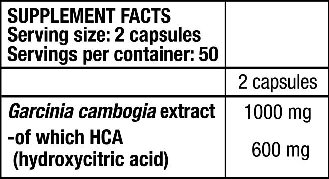 1000 мг витяжки гарцинии, з яких 600 мг НСА.