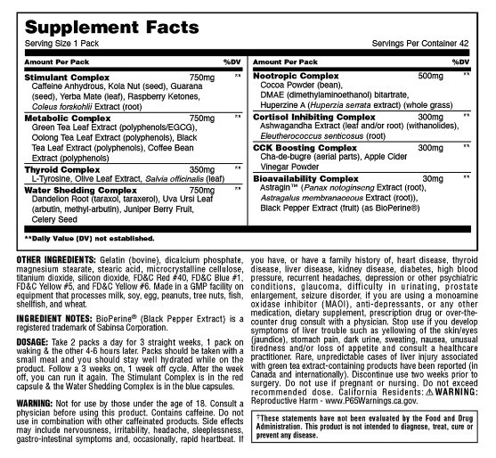 - 750 мг стимулюючий комплекс (безводний кофеїн, горіх кола, гуарану, йєрба мате, кетони малини, екстракт колеуса форсколии)