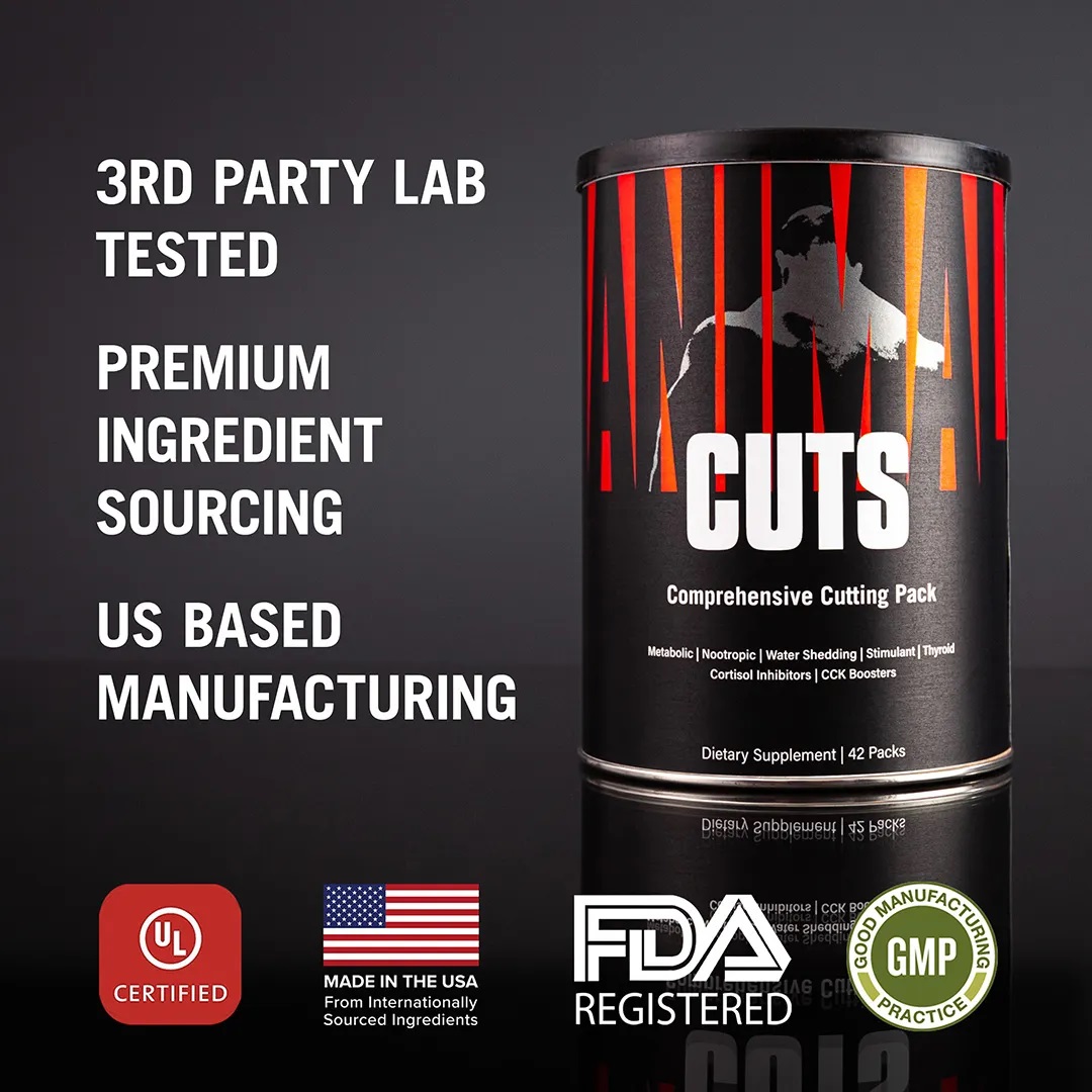 Традиційні жироспалювачі засновані на комбінації кофеїну, ефедрину і аспірину. Вони забезпечує хороший результат в перші тижні використання, а потім викликає звикання. Інноваційний препарат AnimalCuts за результативністю не поступається традиційним добавкам, але при цьому не викликає звикання і забезпечує тривалий стійкий результат.
