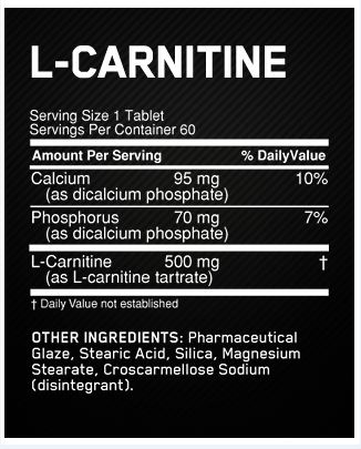 Препарат містить на 1 порцію (1 таблетка) - 500 мг карнітину, 95 мг кальцію, 70 мг фосфору.