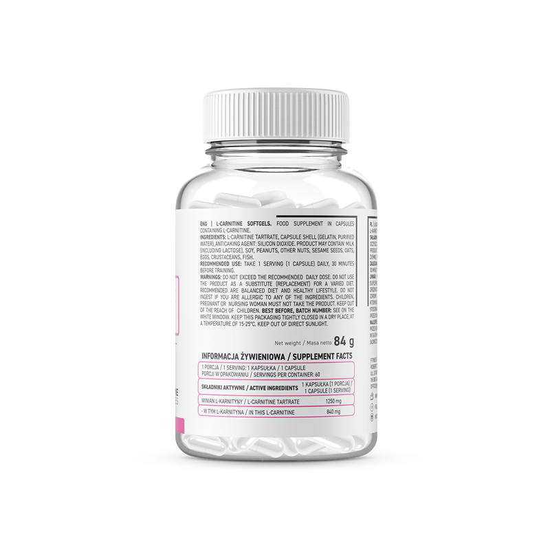 Кожна порція добавки містить 1250 мг карнітину і заповнює його дефіцит. Це активує розщеплення жирів, збільшує витривалість і допомагає тренувати довше і інтенсивніше.