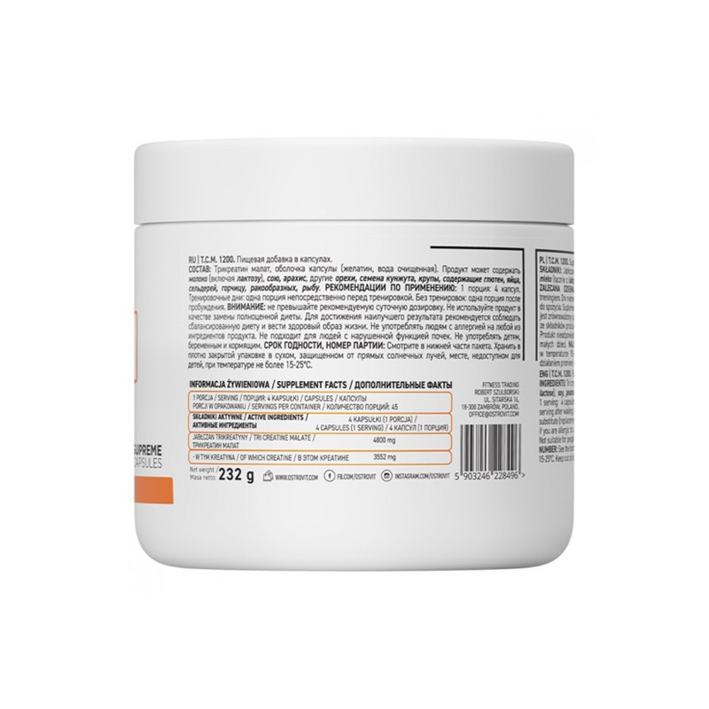 TCM 1200 від виробника з Польщі OstroVit – корисна, безпечна та ефективна натуральна біоактивна добавка з креатином.