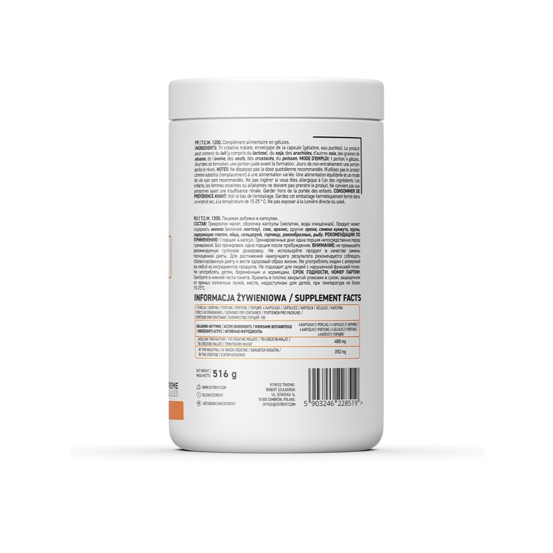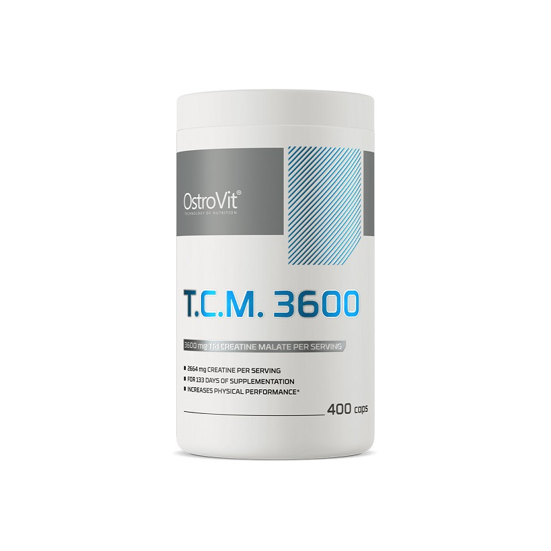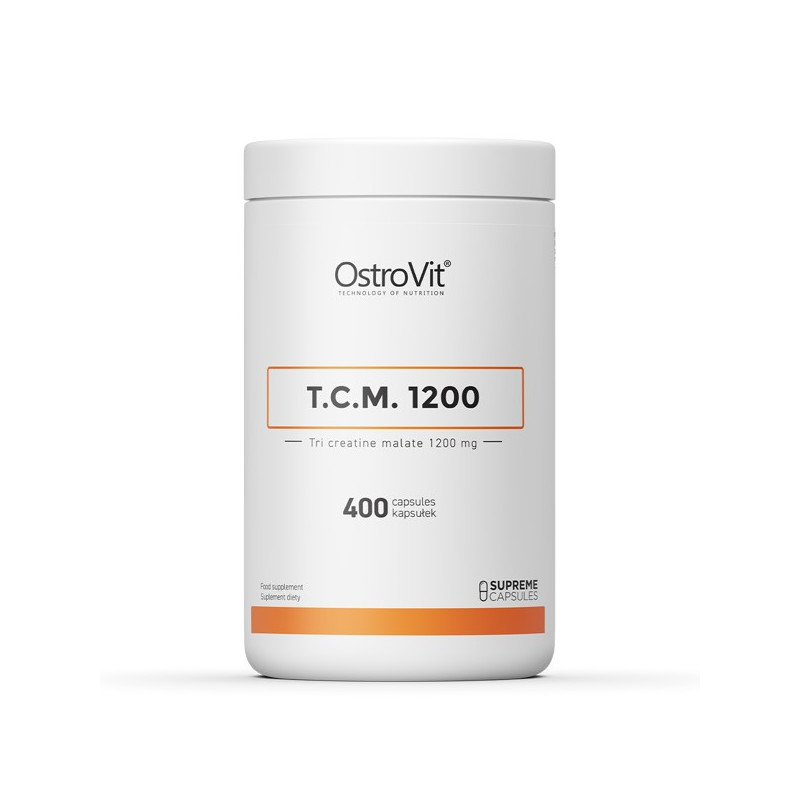 TCM 1200 від польського виробника Ostrovit – високоочищений креатин у м'яких гелевих капсулах. Основний нутрієнт у цій біоактивній добавкі представлений у формі трикреатину малату – поєднання трьох молекул чистого креатину та однієї молекули яблучної кислоти. Така форма забезпечує високу засвоюваність компонента, отже, дозволяє отримувати від прийому продукту максимум користі.