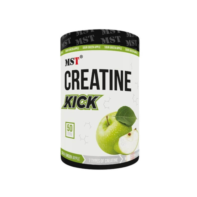 Creatine Kick від німецького виробника MST – революційна біодобавка, що дозволяє за один прийом отримати ударну дозу креатину. У цьому продукті основний нутрієнт представлений одночасно в 7 формах - як звичайний і буферизований моногідрат, гідрохлорид, малат, фосфат, цитрат і піруват. Кожна з форм має унікальні особливості і вносить власний внесок у засвоюваність продукту і користь, яку отримує людина, яка його приймає.