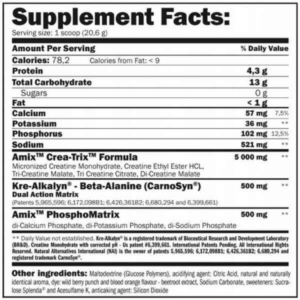 Crea-Trix від виробника Amix з Великобританії – потужний збалансований комплекс, до складу якого входить одразу кілька видів креатину, а також мінерали та бета-аланін. В організмі він діє відразу в кількох напрямках, забезпечуючи виражений комплексний позитивний ефект.