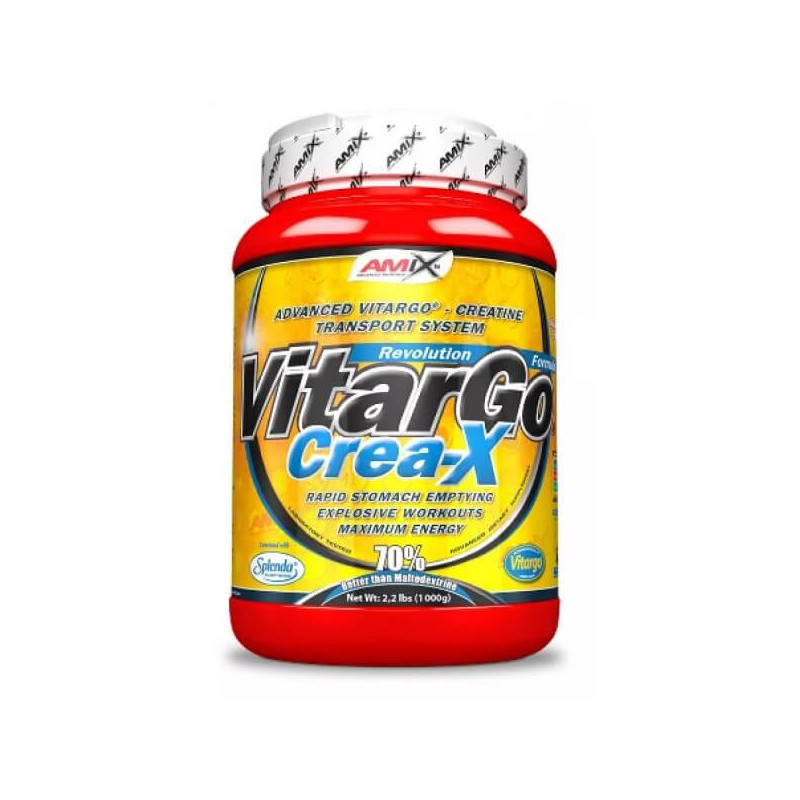 Vitargo Crea-X від британської компанії Amix - збалансована вуглеводна добавка, посилена креатином. Основним компонентом продукту є Вітарго – унікальна запатентована комбінація високомолекулярних вуглеводів. Порівняно із звичайними главодами вона менше часу знаходиться у шлунку, а отже, швидше потрапляє в кишечник і всмоктується його стінками, не зв'язує та не утримує воду, та швидше поповнює запаси глікогену. Для ширшого на організм склад посилений моногидратом креатину.