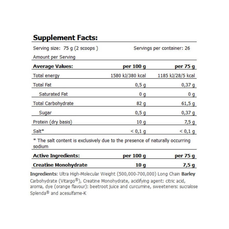 Харчова добавка Vitargo Crea-X від Amix піде на користь спортсменам, яким не вистачає енергії на збільшення продуктивності та досягнення більш високих спортивних результатів, людям худорлявої статури, які мають складнощі з масонабором, тим, хто вживає недостатньо вуглеводів з їжею, а також усім, хто шукає швидкий та надійний спосіб підтримувати стабільний рівень м'язового глікогену та креатину.