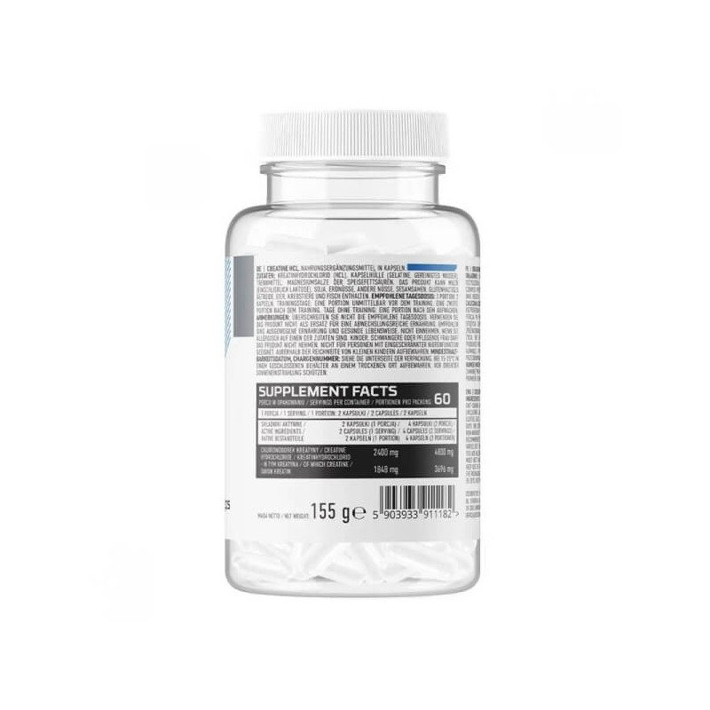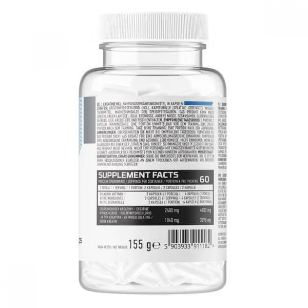 Одна порція CreatineHCL (2 капсули) містить 2400 мг креатин гідрохлориду.