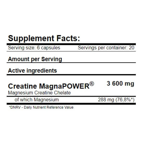 · 3600 мг магнію креатину хелату, у тому числі 288 мг чистого магнію;