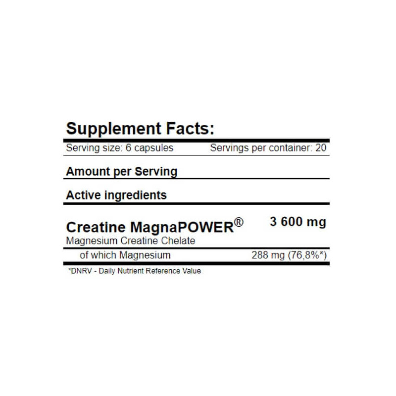 Creatine MagnaPower від компанії з Великобританії Amix – з'єднання креатину з магнієм, наведене у максимально біодоступну хелатну форму. Запатентована виробником формула є більш ефективною, ніж звичайний чистий креатин, за рахунок присутності в ній магнію. Саме він дозволяє молекулам креатину зберігати метаболічну активність.