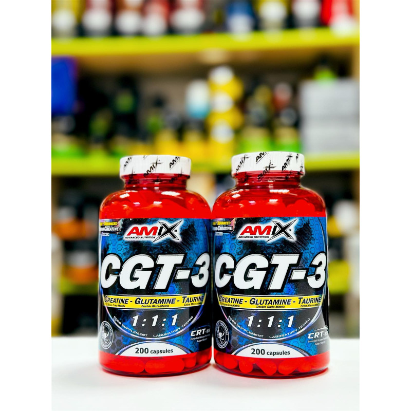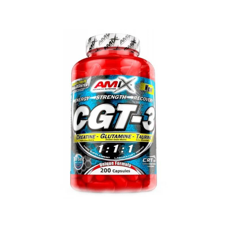 CGT-3 – ефективна біоактивна добавка від популярного європейського виробника Amix, до складу якої входять важливі для життєдіяльності амінокислоти у вигляді унікальних матриць. Зокрема, креатин у цьому продукті міститься відразу у трьох формах – малату, моногідрату та етил-естеру, а глютамін – у формах L-глютаміну та AKG. Також у складі присутній мікронізований таурин з високою засвоюваністю.
