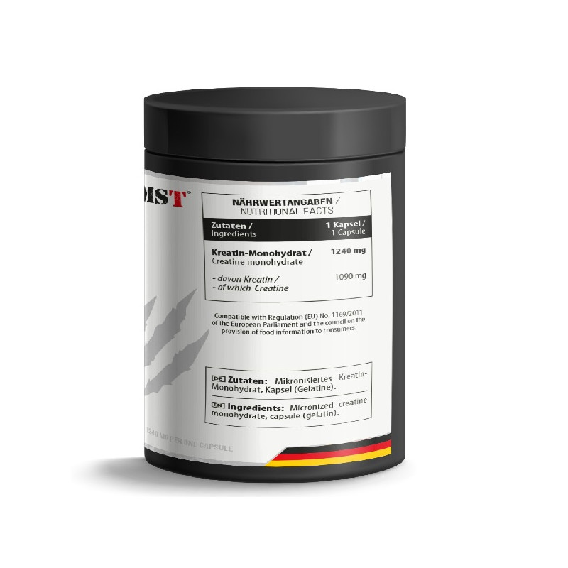 Креатин моногідрат - це харчова добавка, яка містить 1240 мг чистого креатину моногідрату в кожній капсулі. Цей компонент є природним для організму та особливо активний в м'язових тканинах. Він є ключовим для забезпечення енергії та функціонування клітин.