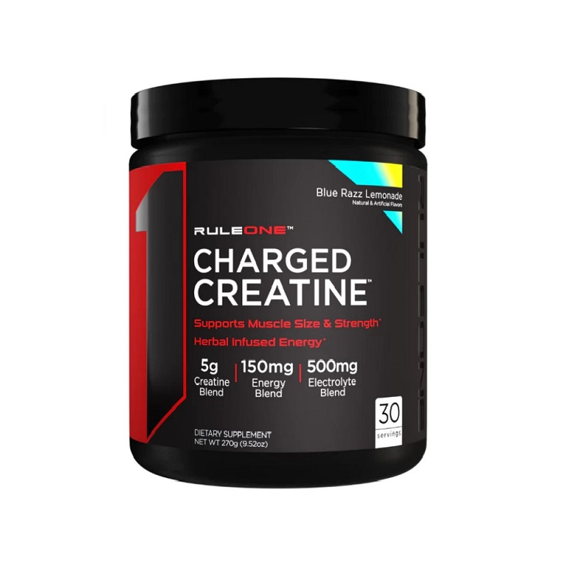 Rule 1 Charged Creatine - це продукт, що виділяється своєю унікальною формулою та особливими характеристиками. Він складається з комплексу широко вивчених компонентів, які сприяють збільшенню м'язової маси, підвищенню сили та інтенсивності, що впливає на покращення спортивної продуктивності.