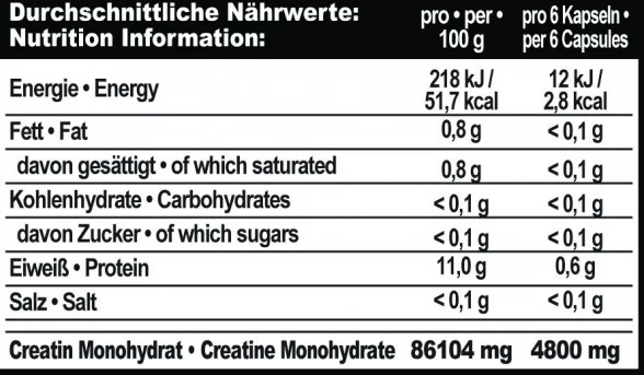Креатин для енергії та витривалості: Creatin IronMaxx містить високоякісний креатин, визнаний одним з найефективніших засобів для підвищення енергії та витривалості. Креатин сприяє відновленню запасів аденозінтрифосфату (ATP), що є основним джерелом енергії для м'язів.